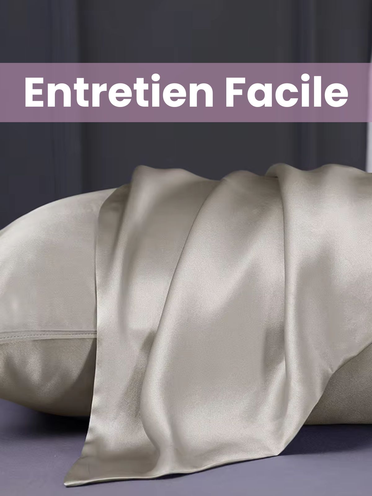 Nos taies d'oreiller en soie sont lavables en machine à 30° et sèchent à l'air libre en quelques heures, sans besoin de repassage. Étant naturellement antibactérienne, la soie nécessite un lavage seulement 1 à 2 fois par mois.